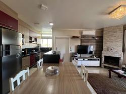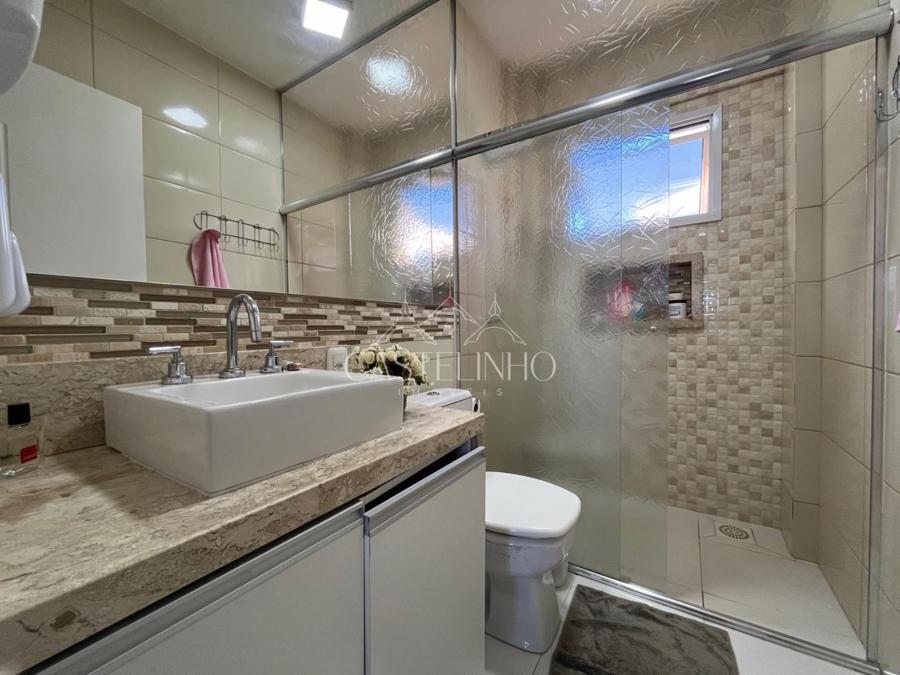 Segundo andar: Sala de estar com lareira com linda vista da cidade, cozinha com móveis sob medida, 03 dormitórios, sendo uma suíte; banheiro social;